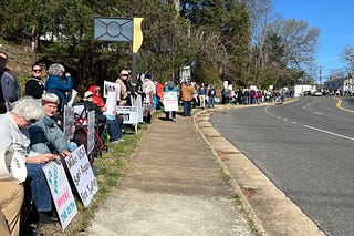 The intersection of William Street and Blue and Gray Parkway in Fredericksburg saw two rallies on Saturday—one encouraging a “no” vote on the April 21…