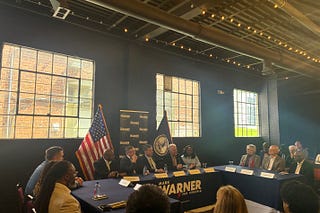 Warner was joined by Senator Tim Kaine, Representative Eugene Vindman, and Delegate Stacey Carroll.