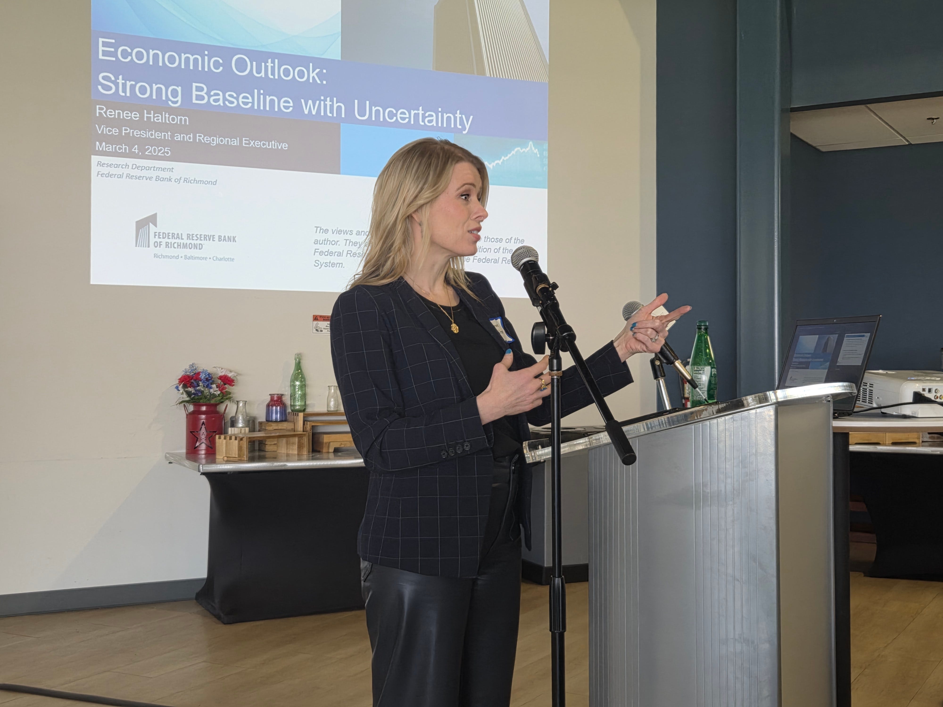 Renee Halton of the Federal Reserve Bank of Richmond told attendees of Lunch and Learn series the economy has a solid footing, but tariffs, inflation, consumer confidence could create turbulence.