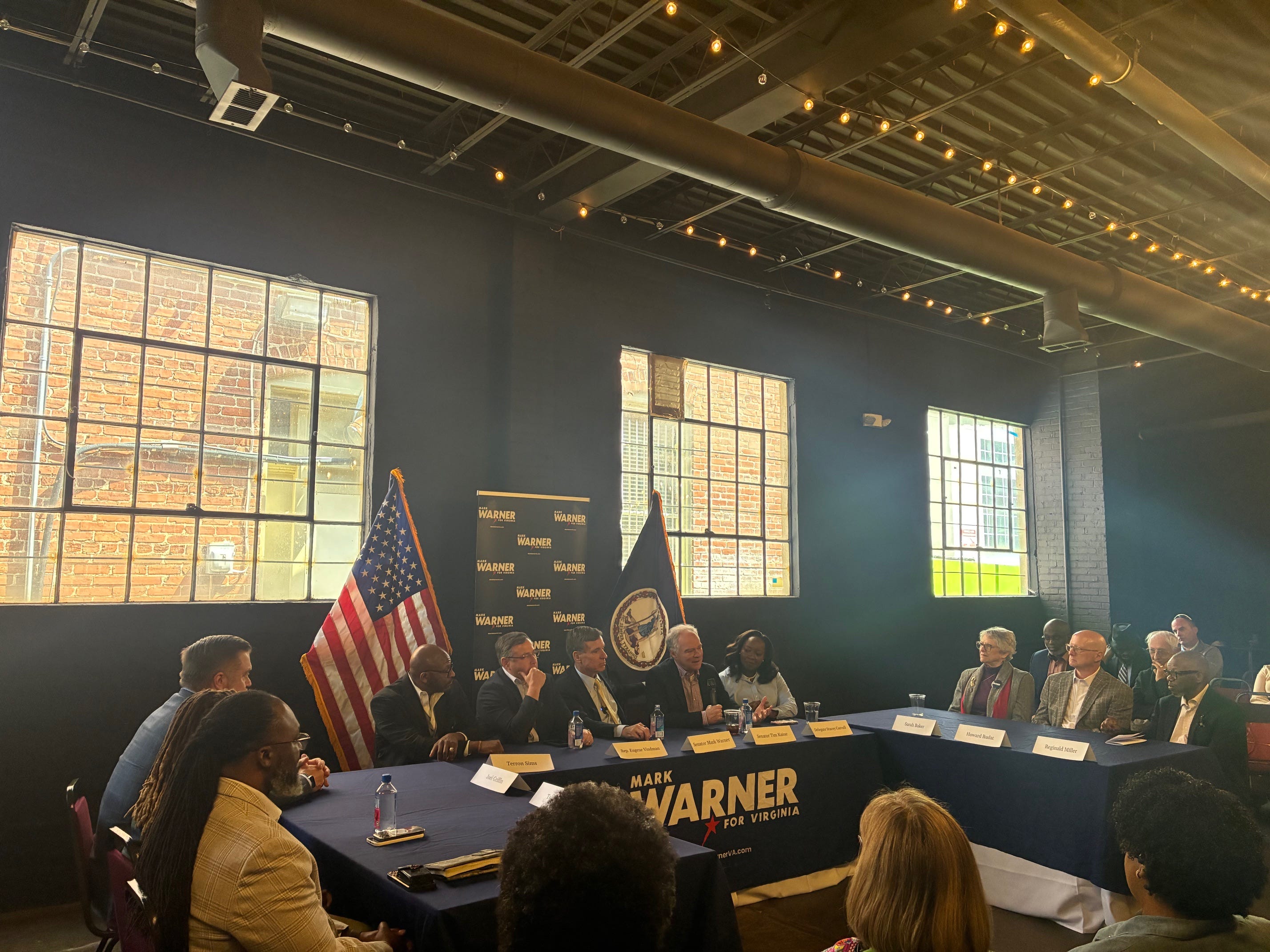 Thursday’s round table, which brought together elected officials and local military connected business owners and community leaders to talk about strengthening federal support for veterans, was part of a series of events kicking off Democrat Mark Warner’s campaign for re-election to the Senate.