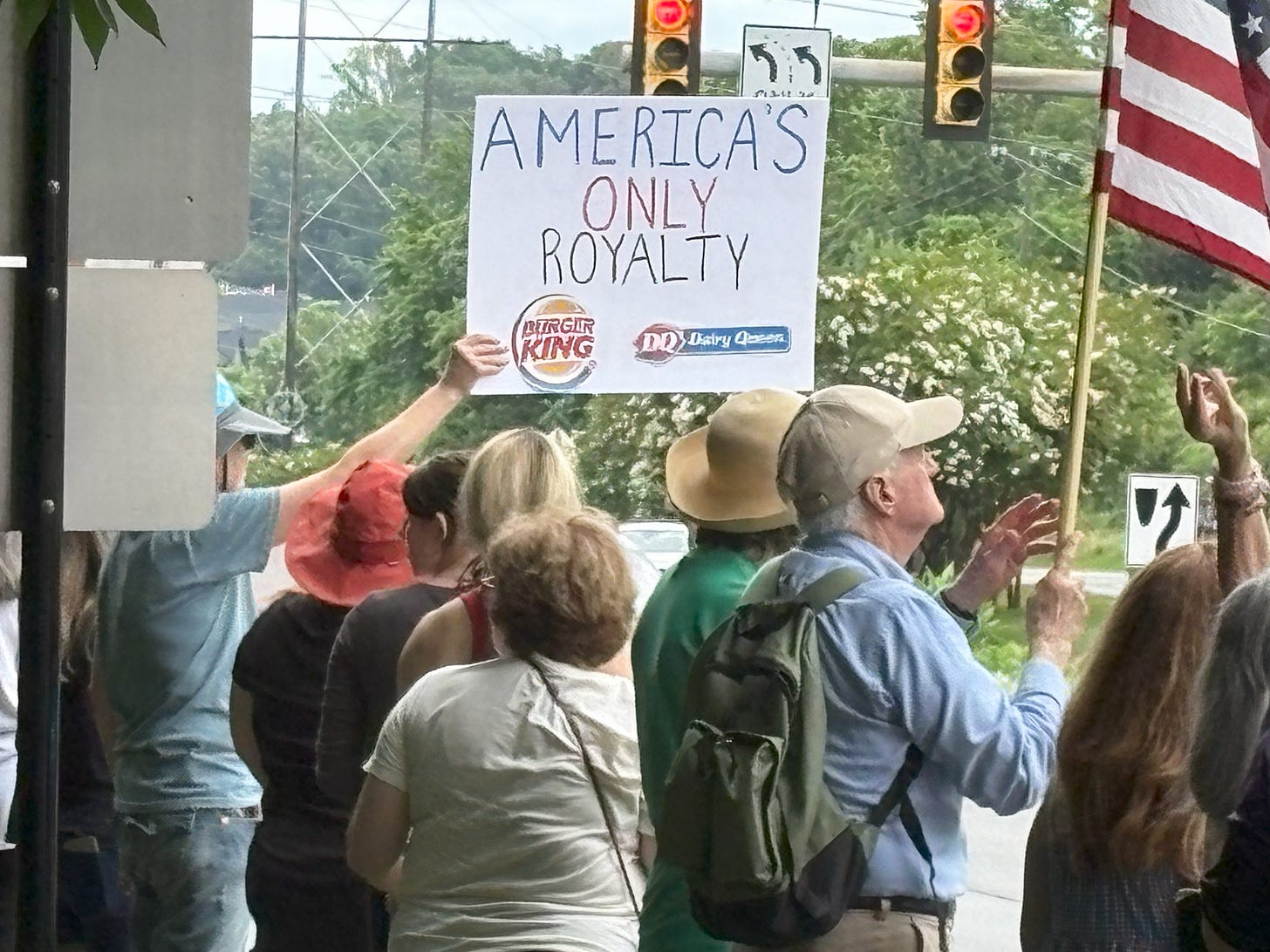 On a muggy Saturday morning at the corner of Route 3 and William Street, protestors gathered once again to express their concerns about actions being taken in the United States around immigration and the growing amount of power being consolidated under the current president.