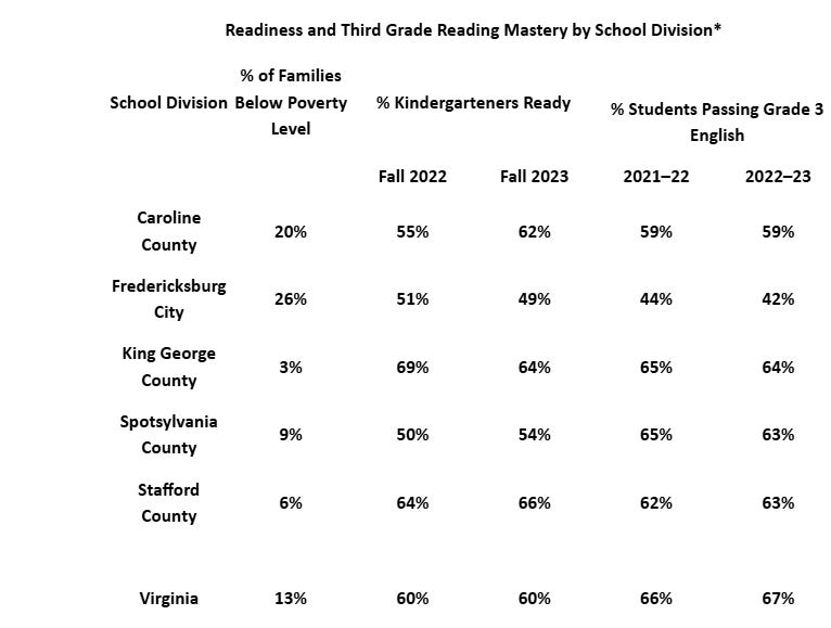 The data from this program provide some eyebrow-raising information about whether Virginia children are ready for kindergarten. Additionally, research using third grade reading success as a predictor for later academic success finds that students not reading as expected by the end of third grade are four times less likely to graduate from high school. (https://parcalabama.org/major-gains-on-reading-scores-more-3rd-graders-readingsufficiently/#:~:text=Starting%20in%20fourth%20grade%2C%20students,the%20wake%20of%20the%20pandemic, June 2024.)