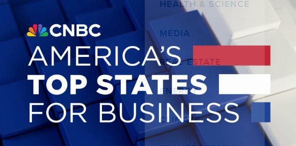 He will also frequently cite CNBC’s “America’s Top States for Business” to back up his quote. And it was an effective piece of evidence … until Thursday.