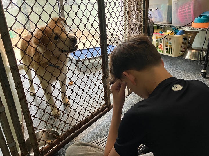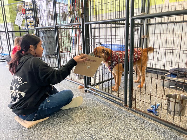 On Friday afternoon, almost every dog at the shelter had a middle school student sketching away in front of it. Many of the dogs posed like professionals for their portraits, sitting up close to the bars of their kennels and making eye contact with the artists.