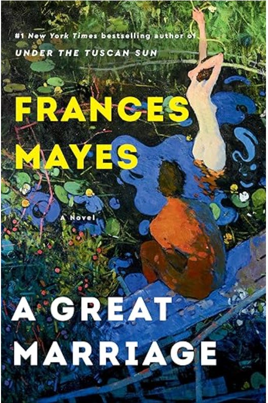 Dara Willcox is following her dream and marrying the man she loves. After searching for the right one, she found Austin Clark at an art gallery, and their passion blossomed into a sensational romance. Days before their wedding, at their engagement ceremony, surrounded by her supportive family, Dara and Austin are fully committed to making their highly independent lives work. So begins Frances Mayes' A Great Marriage.