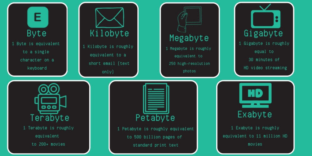 From there, we move to a Petabyte, which holds 500 Billion pages of standard text print. Next is the exabyte, which can hold 11 million HD movies.