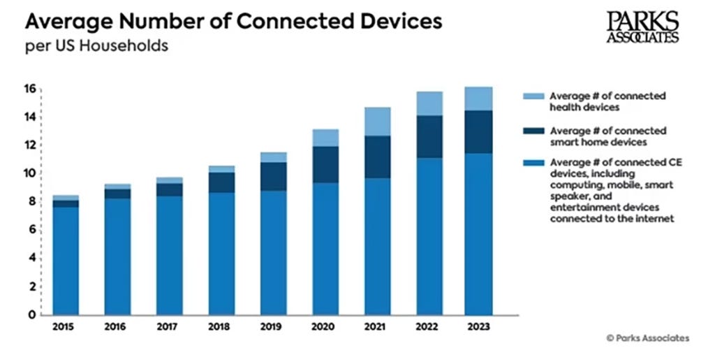 According to Parks Associates, the average home now has 17 internet connected devices in the home.