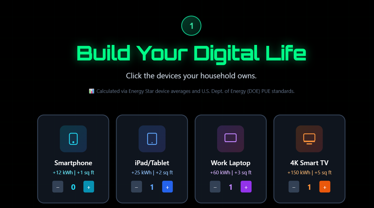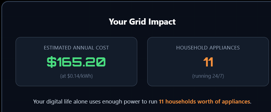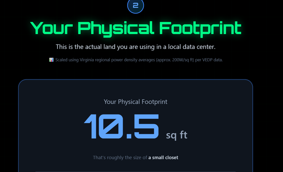 How much data center space does your digital life occupy? How much does your digital use tax the electric grid? And how would your policy choices affect both? A simple app lets you know. Try it!