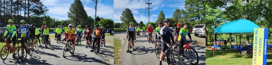 If you are looking for a great way to spend the summer with friends, get into shape, and enjoy the beautiful countryside that we have in Virginia, a membership in the Fredericksburg Cycling Club is the way to go. For more information, please visit Fredericksburg Cyclists.