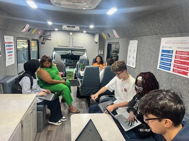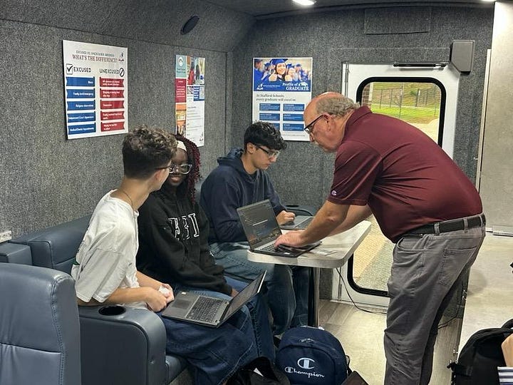 Stafford’s new blue bus is named SCOUT, and its mission isn’t to shuttle kids to school, but rather to deliver on-the-go access to school resources, programs, and support.