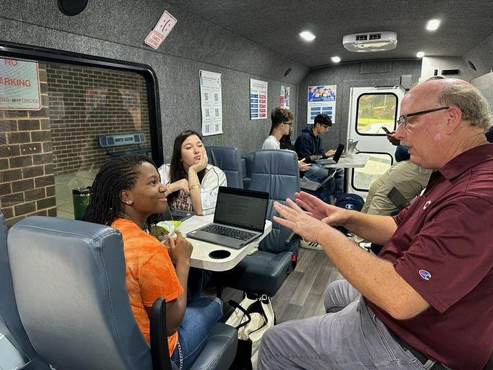 From helping a student looking for a part-time job navigate an online application, to helping three college-bound students think more clearly about what pathways they’re going to choose, and helping two JROTC students figure out how to promote their program to middle school students, the SCOUT bus created a conducive environment that allowed a lot of work to get done in a short amount of time.