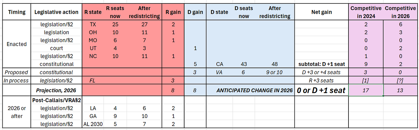 In a January 20 post, he noted that should seats flip according to the newly gerrymandered state congressional districts, the result would essentially be a wash. Republicans are projected to pick up 8 seats should Florida push through its redrawn map, while Democrats will also pick up 8 seats.