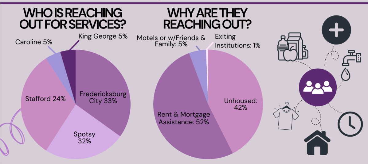 Hope House, which is a CoC member, is uniquely positioned in our region to help people understand the full scope of the homeless issue because it operates the Homelessness Helpline (540-358-5801), which is the coordinated intake process for the Fredericksburg region, to include the counties of Caroline, King George, Stafford, and Spotsylvania, and the city of Fredericksburg.