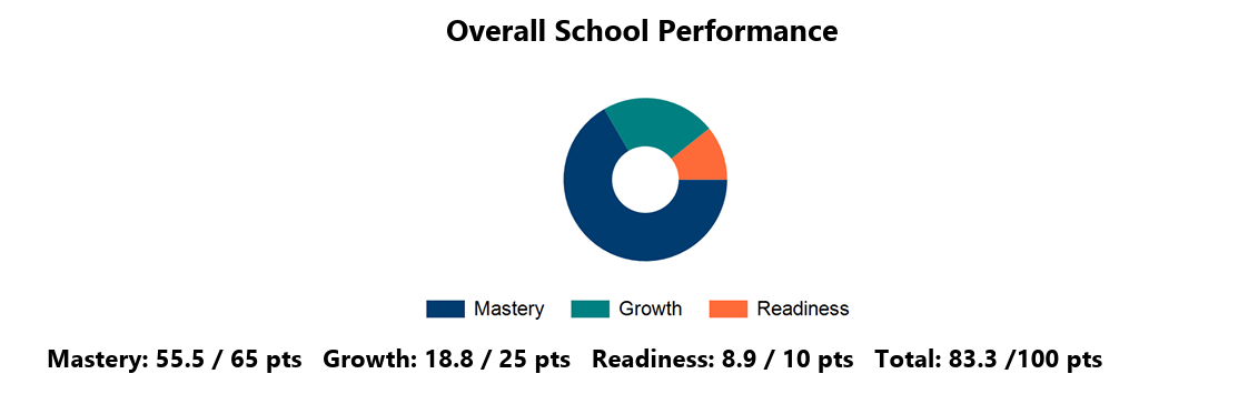 The state assigns points for students who have reached mastery, growth, and readiness goals. At Battlefield, the school earns a very respectable total score of 83.3 — that’s good enough to earn the second-highest of four performance category ratings — “On Track.” Except, that’s not what the school earned.