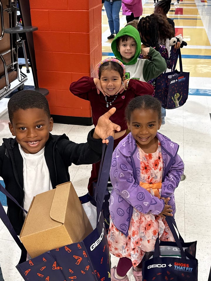Every student at Fredericksburg City’s Lafayette Elementary School went home today with a new pair of sneakers, thanks to a partnership between GEICO and the nonprofit organization Shoes That Fit.