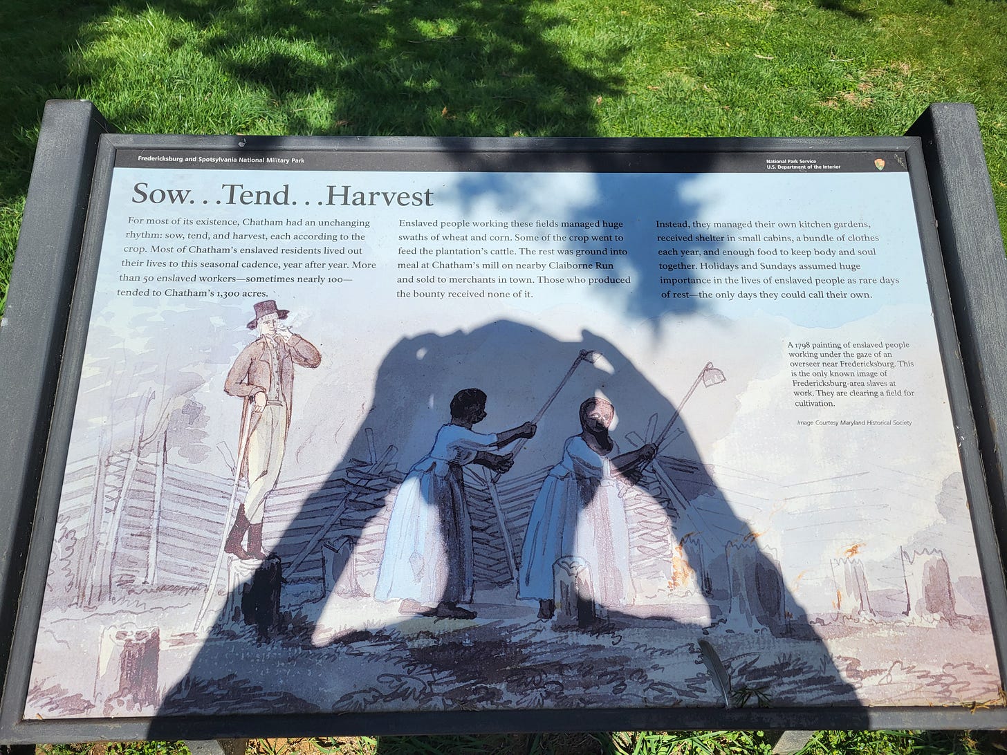 There are also no surviving slave cabins at Chatham. In fact, scanning the landscape, one would be hard pressed to visualize the hundreds of enslaved people who lived and toiled on this land.