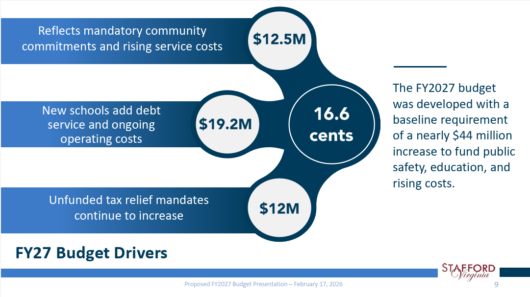 The challenges facing the county were made apparent quickly when Ashton said that the FY2027 budget started with a baseline requirement that included $44 million in increased funding for public safety, education, and rising costs.