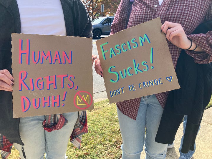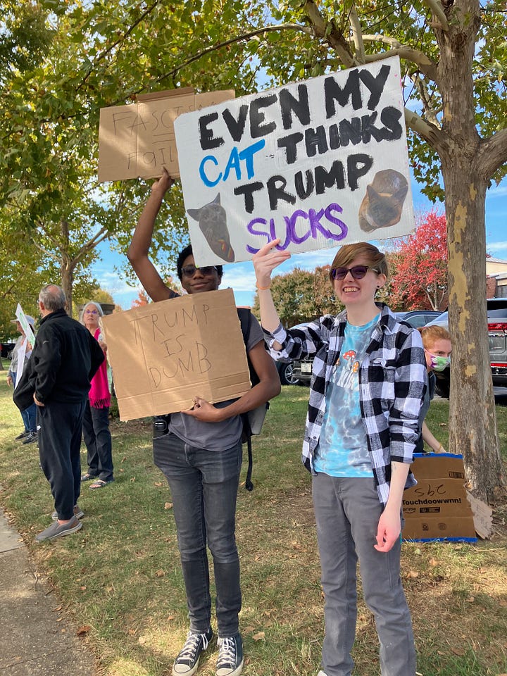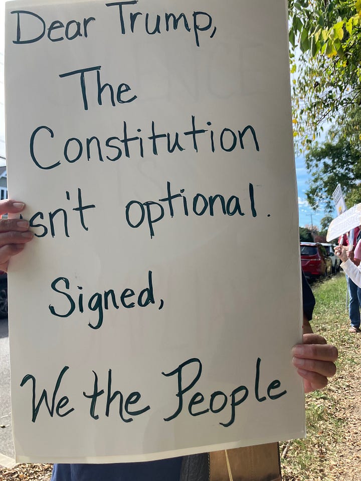 The Fredericksburg protest was organized by a coalition of groups including the Spotsy Democrats, Indivisible FXBG, the Fredericksburg Democratic Committee, the Caroline County Democratic Committee, the Stafford Democrats, Virginians Organized in Civic Engagement, and Fredericksburg United for Democracy.