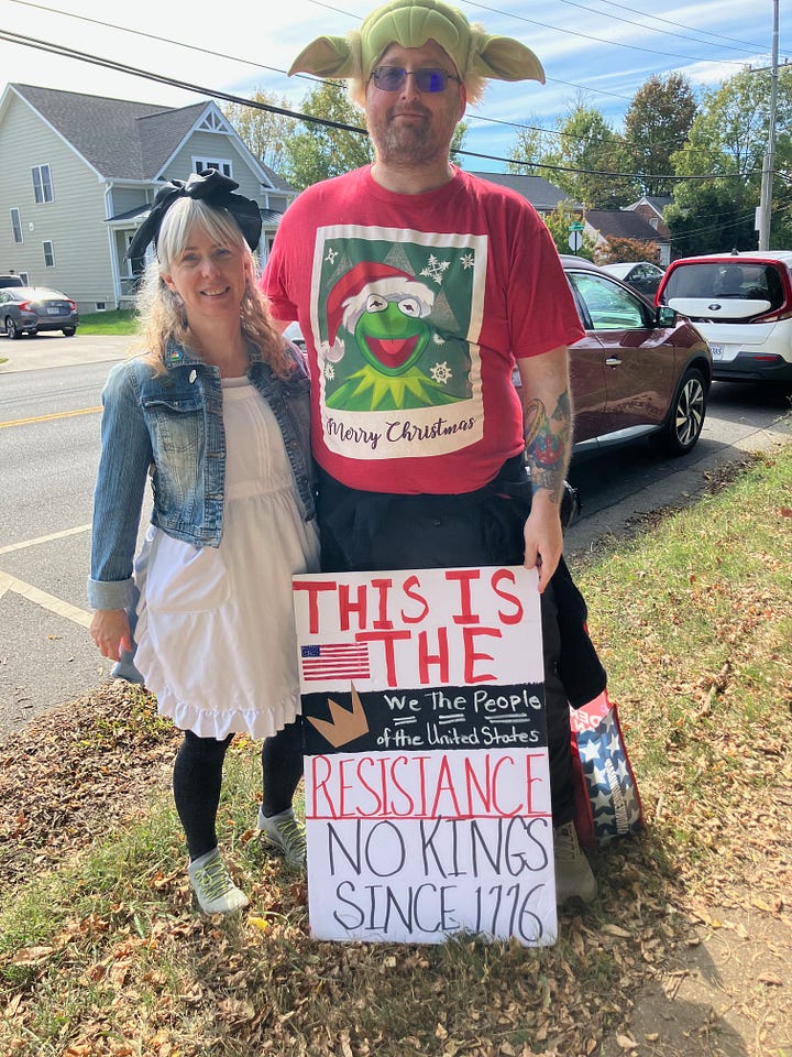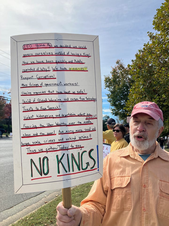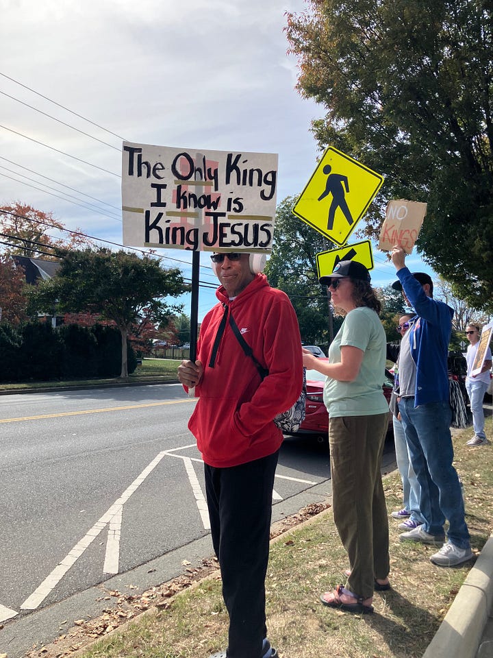 Saturday’s “No Kings” protest drew at least 700 people to downtown Fredericksburg.
