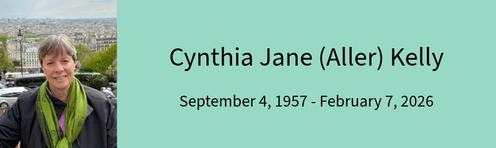 Cynthia Jane (Aller) Kelly, a true teacher and lifelong resident of Fredericksburg, Virginia, set off on her last trip on February 7, 2026, at the age of 68 after a multi-year battle with cancer. She departed from her home surrounded by family.