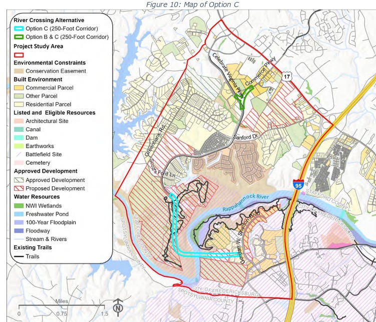 The full report that citizens can comment on is called the “Rappahannock River Crossing Parkway Alternative Crossings” study and runs to more than 700 pages. According to FAMPO, “There is no new information or analysis that has not been previously presented to the PC or local boards.”