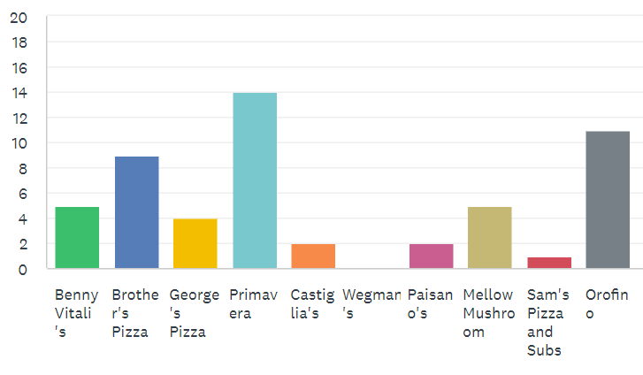 To our way of thinking, there’s no such thing as a bad pizza, and every pie-maker that received a vote deserves their day in the sun. So we have listed them all in order from fewest votes to most.