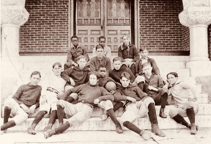 What is the value of a high school team? One might spend a moment peering back more than a century at the 1896 Indiana Soldier’s and Sailor’s Home football team. The visionary institution was founded in 1865 to provide a solid education and vocational training for orphans of Civil War veterans. Once those kids were given a good start, the Home’s mission expanded to care for all “at risk” kids. Among other remarkable accomplishments of the facility, the football team was integrated.