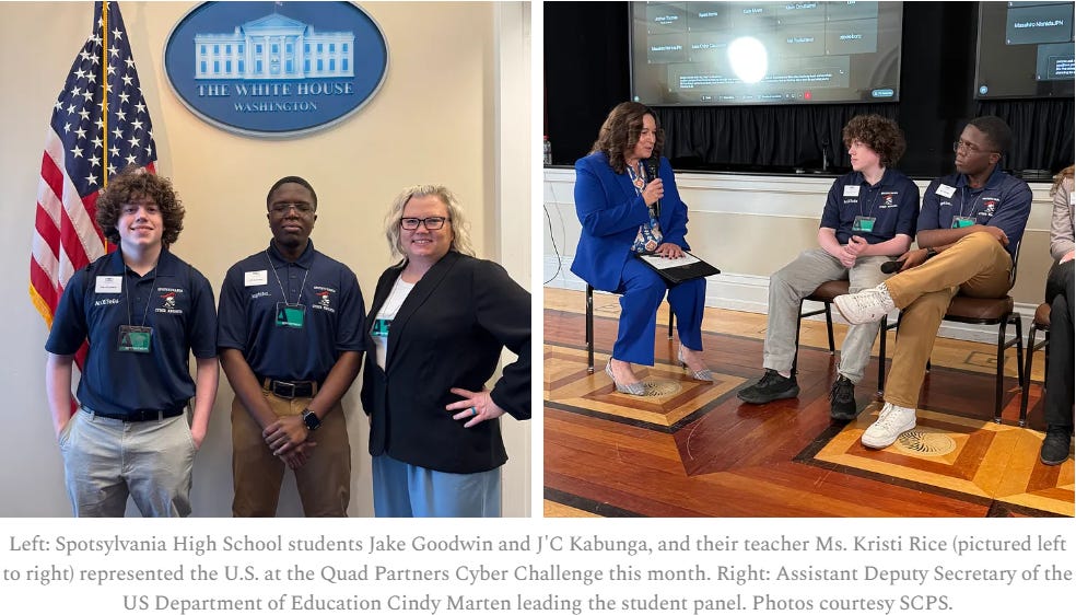 Last year, Goodwin was one of eight U.S. students selected to attend the Quad Cities Challenge at the White House. The international Quad Cyber Challenge was launched in 2023 by the four Quad partners—Australia, India, Japan, and the United States—with the goal of “strengthen[ing] responsible cyber ecosystems, promot[ing] public resources, and rais[ing] cybersecurity awareness,” according to a joint press release from the four countries.