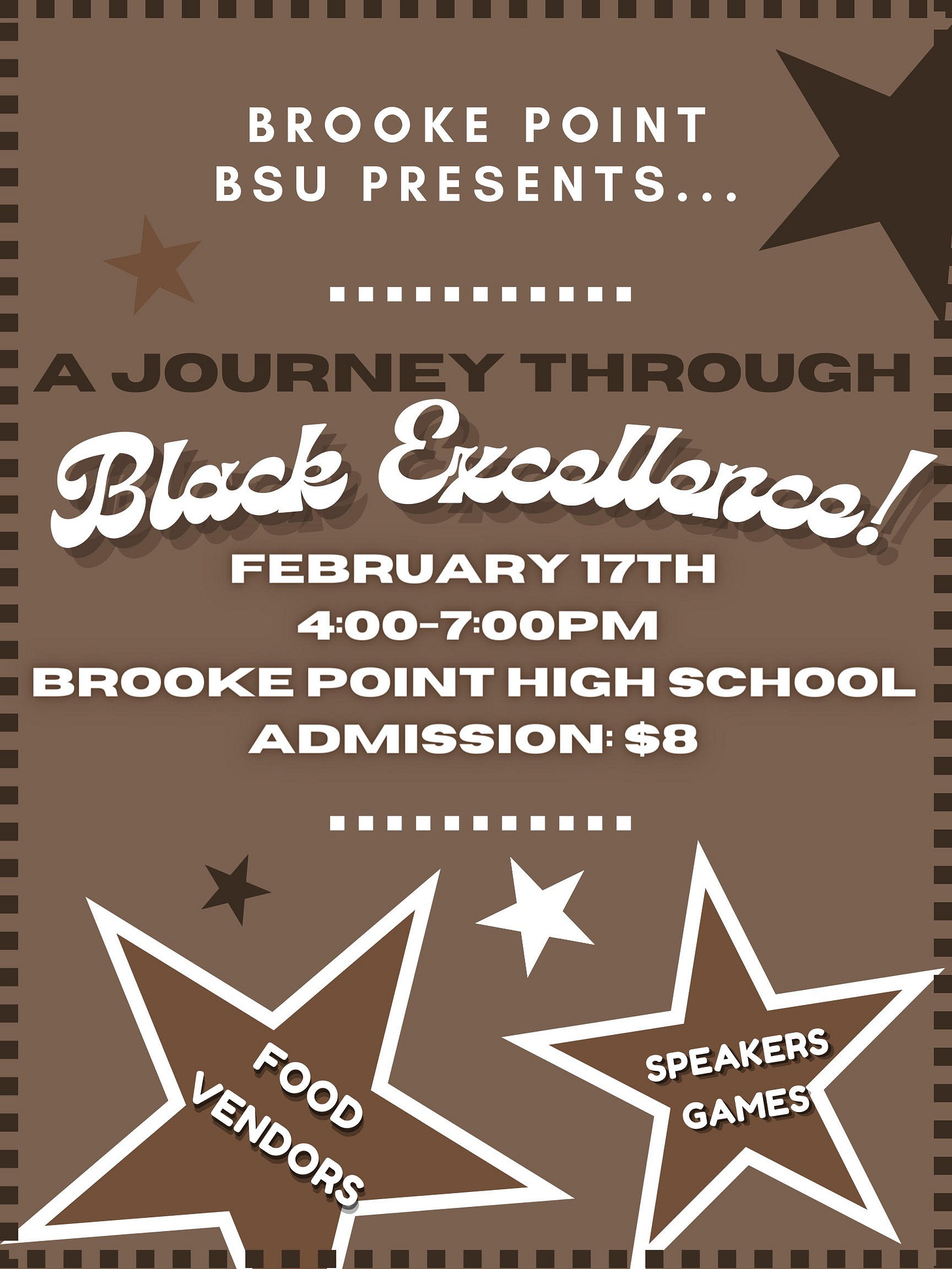 North Stafford High School will present its annual Black Excellence Celebration, and Brooke Point High School will debut a new event, titled “A Journey Through Black Excellence.”