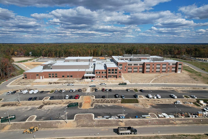 Stafford County’s sixth high school is about 75% complete, and it is taking the shape of a modern educational facility ready to house the division’s proposed specialty center dedicated to media and the arts. In addition to the blackbox theater and dance studio, there will be TV recording and editing studios—not to mention the orchestra, band, and choir classrooms with built-in, soundproof practice and recording studios, and two fine arts labs.