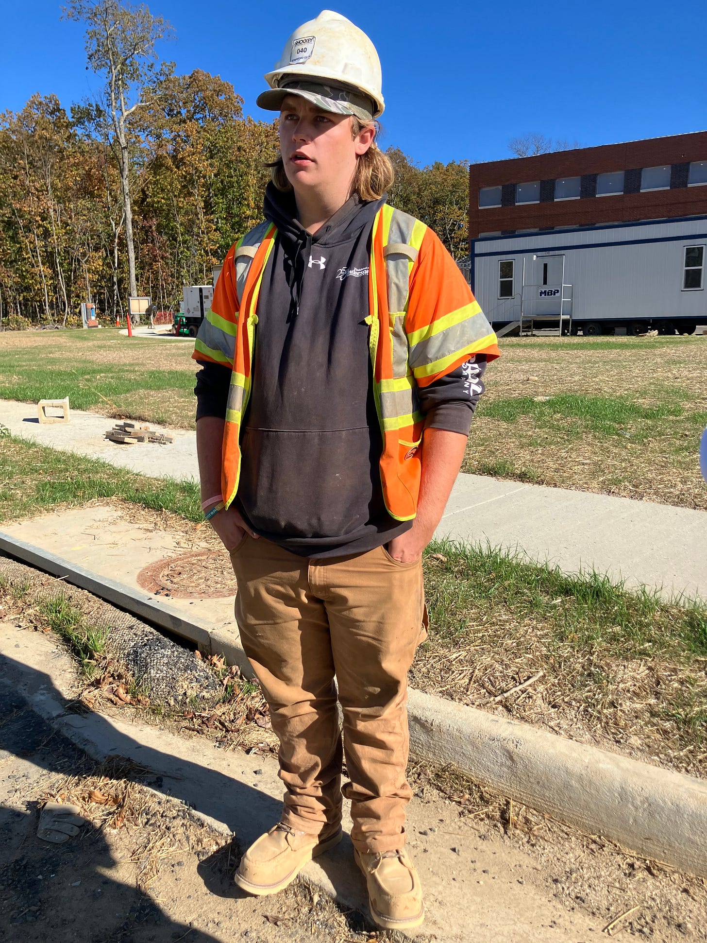 Cody Wickline is a 2023 graduate of Stafford High School who is now helping to build Falls Run Elementary as an employee of subcontractor Phillips. He studied carpentry, masonry, and electricity at Stafford High and he participated in the division’s house construction project BOOTS—an acronym for Bringing Occupational Opportunities to Schools (BOOTS)
