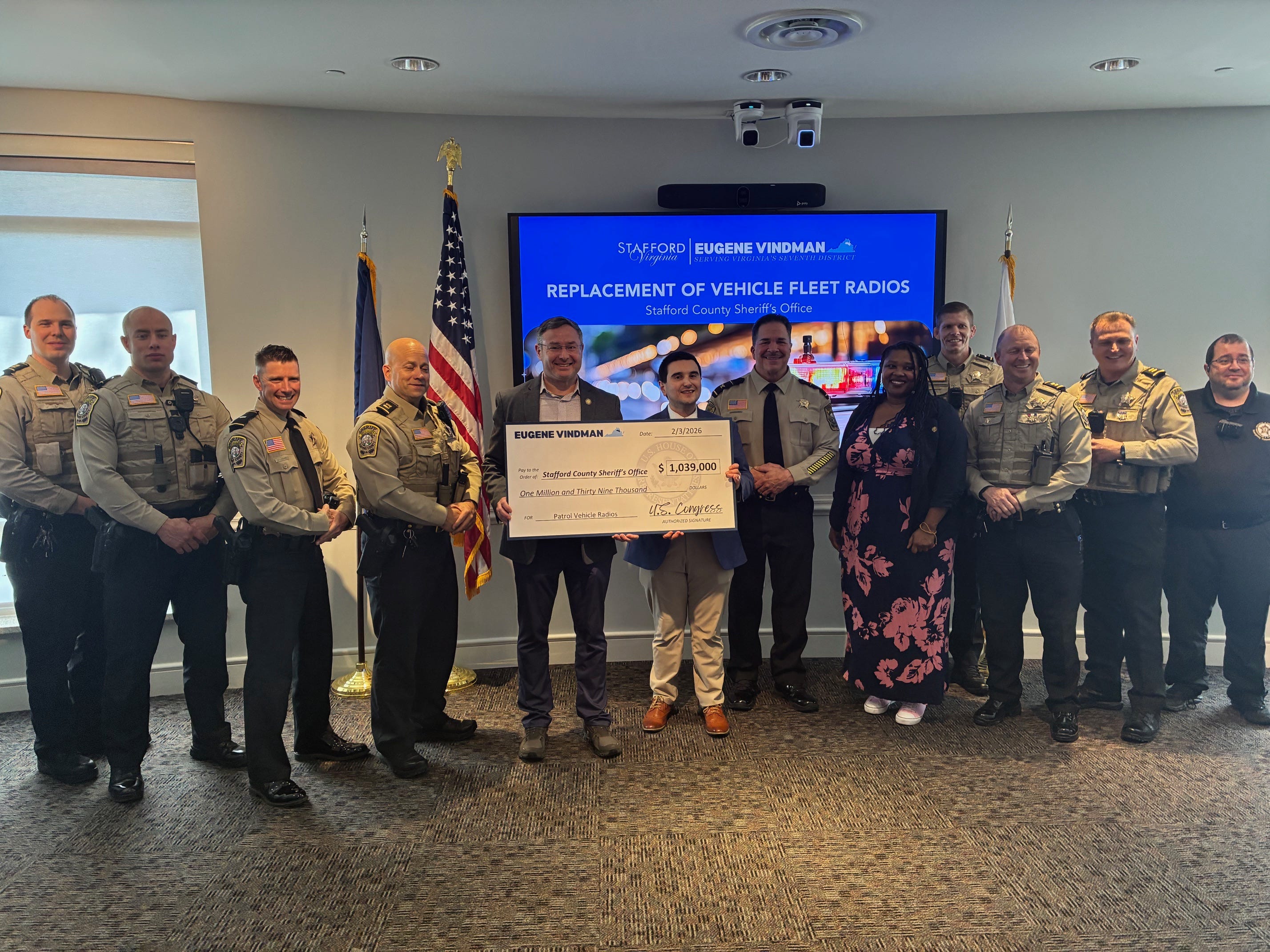 “This is one of the biggest,” he said, gesturing to a check for just over $1 million, made out to the Stafford County Sheriff’s Office from the U.S. Congress.