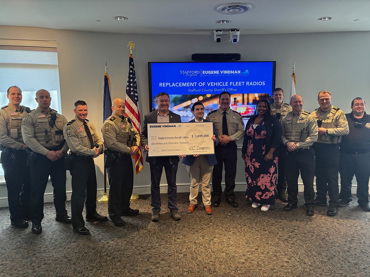 Vindman Celebrates Funding for Law Enforcement Projects in Stafford, Caroline