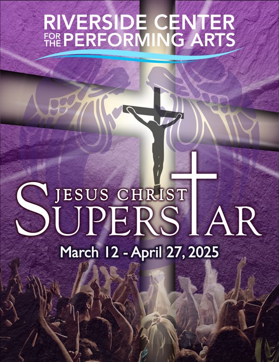 Friday, 7:30 p.m. (repeats Saturday at 7:30 p.m. and Sunday at 3 p.m.): Jesus Christ Superstar at Riverside Center for the Performing Arts. Tickets $35-$82, available here.