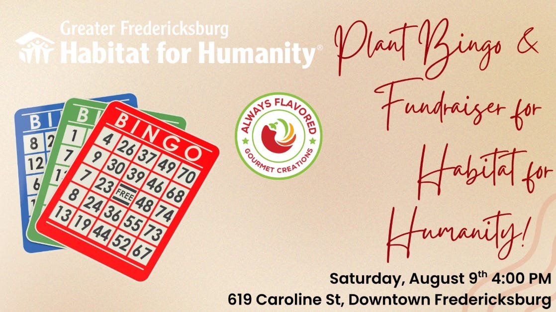 Enjoy a playful evening of bingo at Always Flavored, complete with plant prizes and a feel-good cause. A portion of all sales supports Greater Fredericksburg Habitat for Humanity!