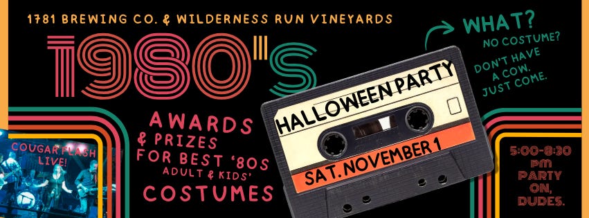 1980s Halloween Party at 1781 Brewing Co. & Wilderness Run Vineyards